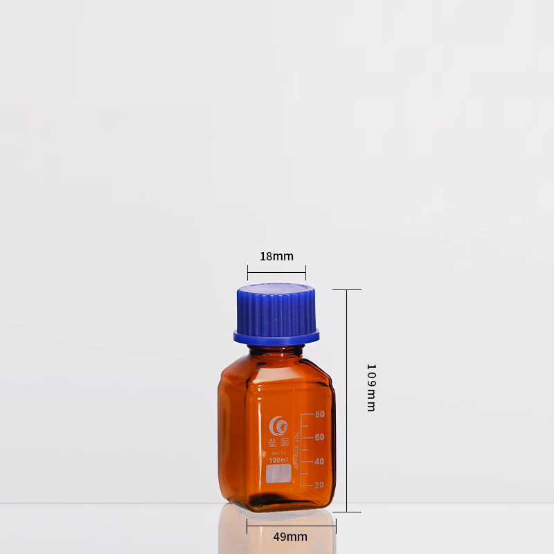 GL45 Square bottle with screw cap, brown glass, graduated, 100 ml to 1.000 ml